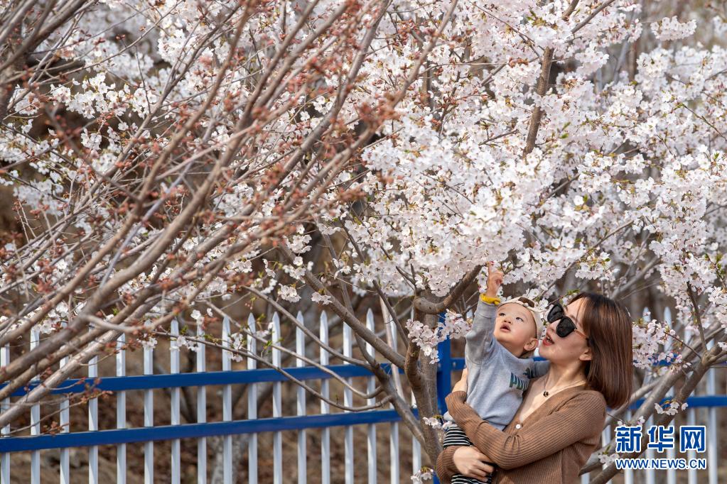 4月7日,游人在山西省太原市玉泉山城郊森林公園賞花。近日,山西省太原市玉泉山城郊森林公園栽植的近25萬株各類櫻花競(jìng)相盛開,吸引不少市民前來觀賞。新華社記者 楊晨光攝