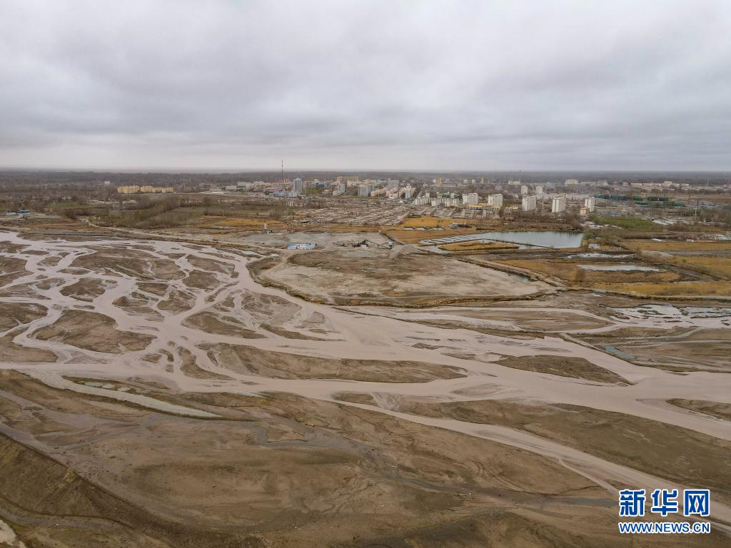車爾臣河隔開了塔克拉瑪干沙漠與新疆且末縣城(3月31日攝 ,無(wú)人機(jī)照片)。新華社記者 高晗 攝