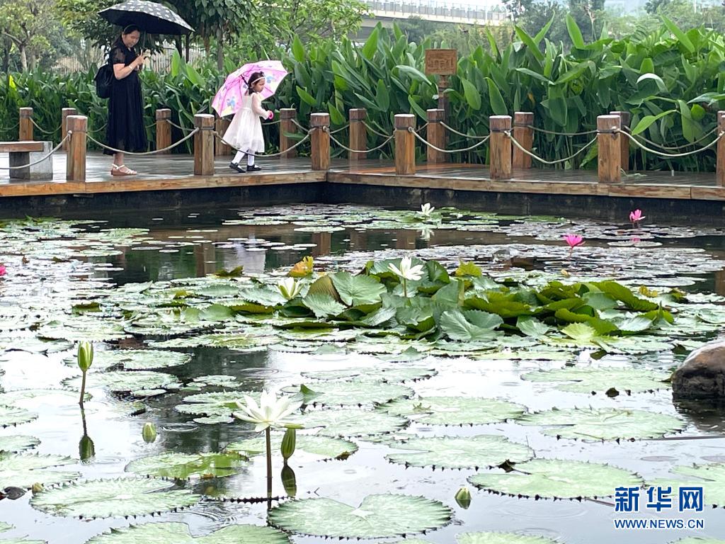立夏時節(jié),廣西南寧市那考河濕地公園內草木吐翠、鮮花斗艷,一派繁茂景象。