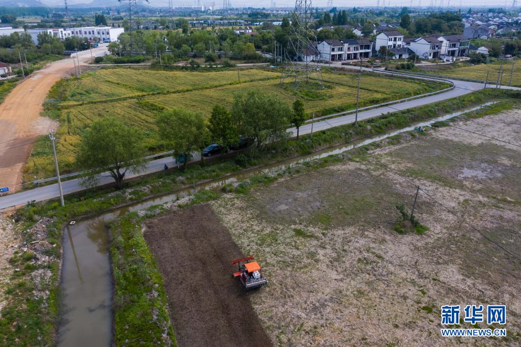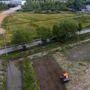 在東林鎮保永村,種植戶操作旋耕機耕地,準備播種水稻(5月7日攝,無人機照片)。