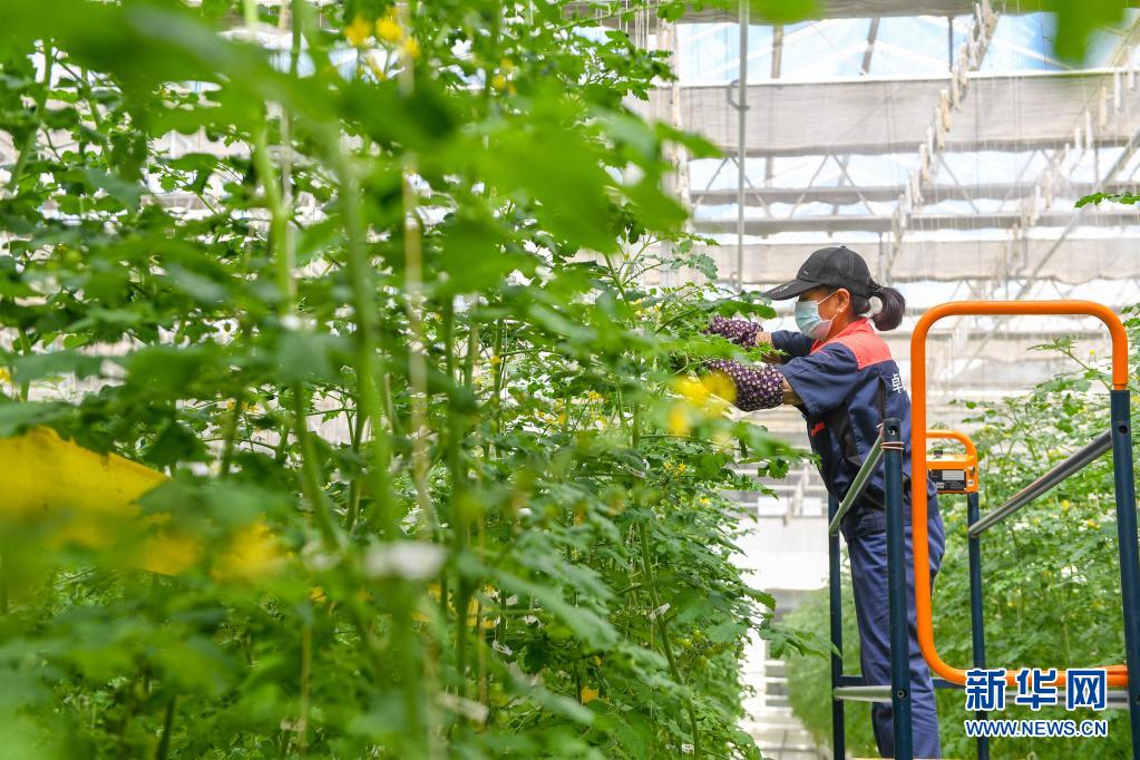 在吉林省吉林市永吉縣卓遠農業種植專業合作社的“植物工廠”,農民趙玉霞在修整作物(4月14日攝)。新華社記者 張楠 攝