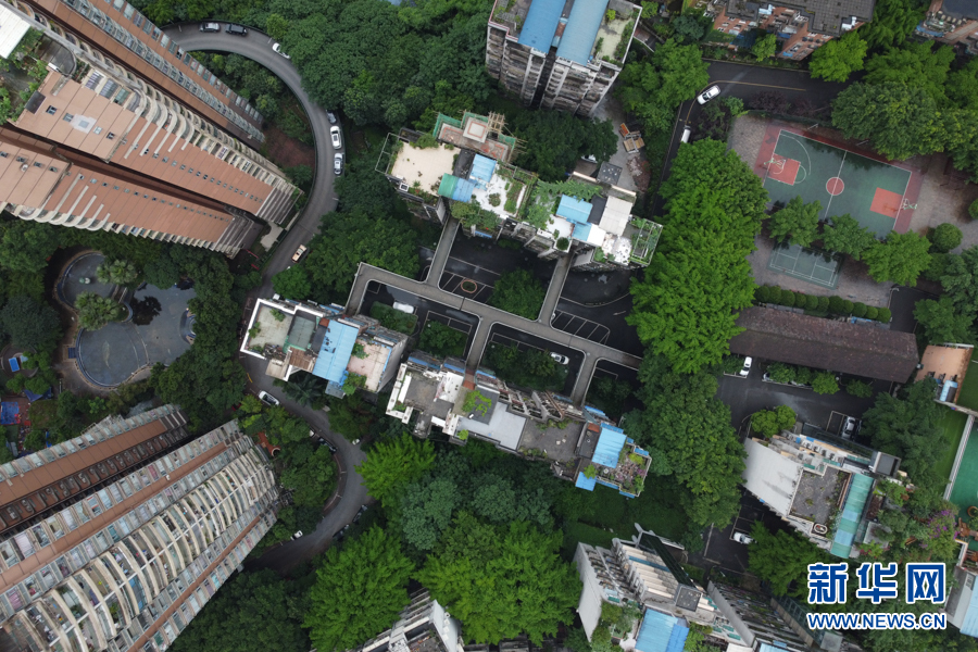 天橋在空中穿行,可方便居民出入。新華網 耿駿宇 攝
