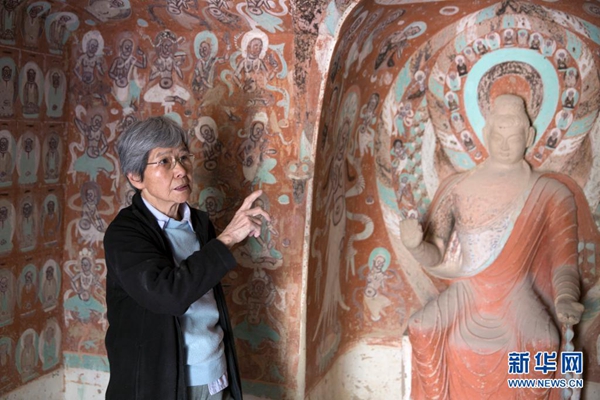 樊錦詩在敦煌莫高窟(2015年9月29日攝)。新華社發(孫志軍 攝)