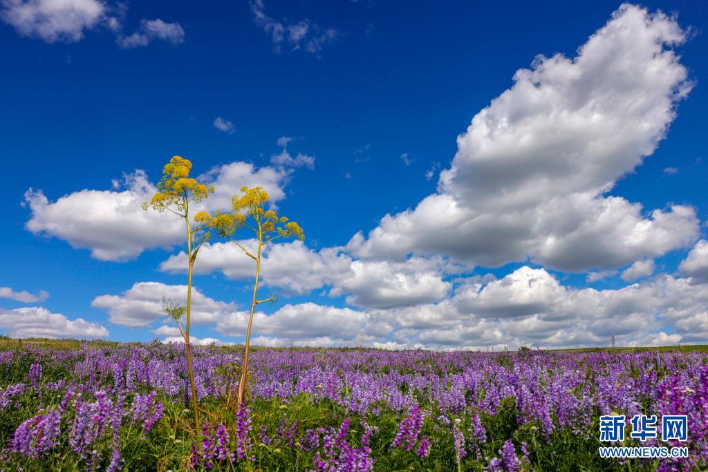 新疆裕民縣巴爾魯克山區夏牧場上的山花(6月14日攝)。