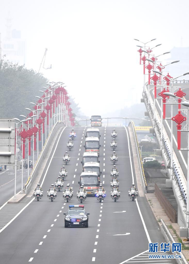 這是“七一勛章”獲得者集體乘坐禮賓車從住地出發(fā),由國賓護衛(wèi)隊護衛(wèi)前往人民大會堂。