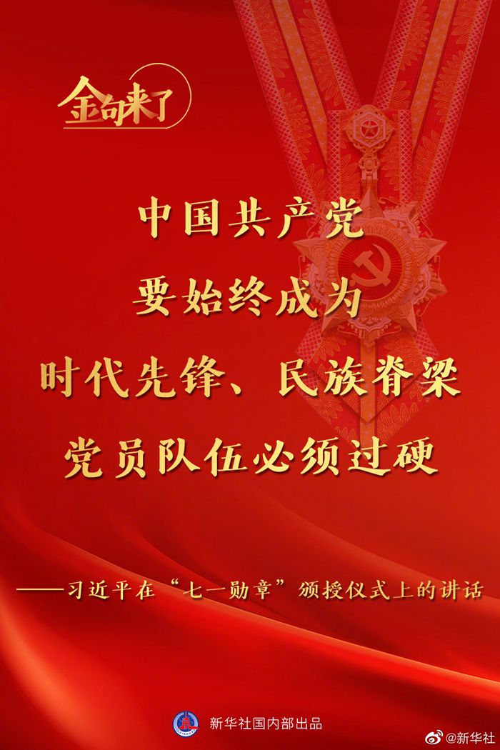 習近平說,新時代是需要英雄并一定能夠產生英雄的時代。中國共產黨要始終成為時代先鋒、民族脊梁,黨員隊伍必須過硬。希望受到表彰的同志珍惜榮譽、發揚成績,爭取更大光榮。各級黨組織要從工作和生活上關心愛護功勛黨員,大力宣傳“七一勛章”獲得者的感人事跡和崇高品德,在全黨全社會形成崇尚先進、見賢思齊的濃厚氛圍,激勵廣大黨員、干部牢記黨的性質宗旨,牢記黨的初心使命,不懈奮斗,永遠奮斗,在全面建設社會主義現代化國家新征程上,向著第二個百年奮斗目標、向著中華民族偉大復興的中國夢奮勇前進!?