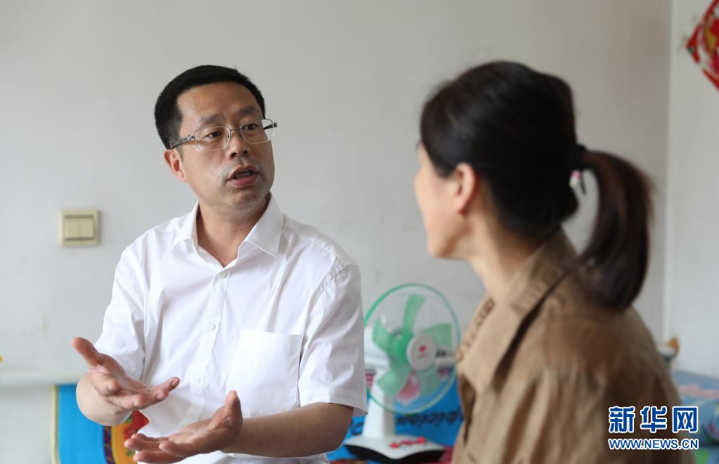 7月2日,在沈陽(yáng)市沈北新區(qū)興隆臺(tái)街道單家村,聞然(左)與村民交談。新華社記者 楊青 攝
