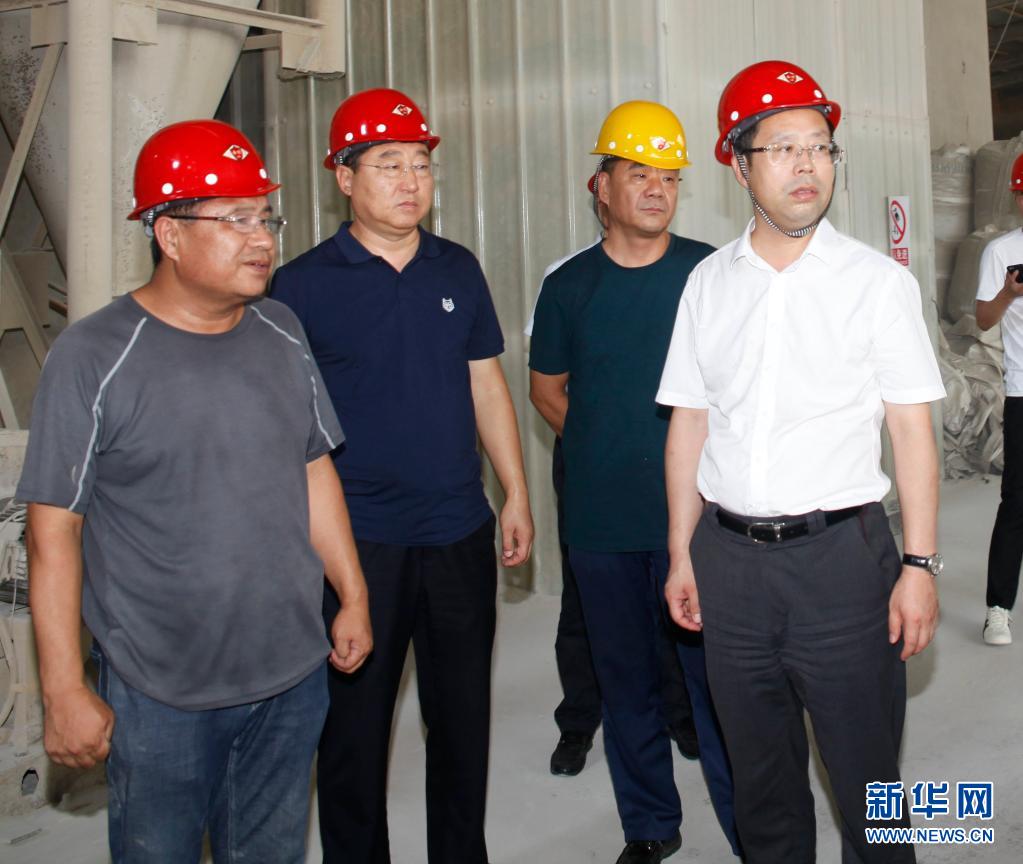2018年8月4日,時(shí)任海城市委書(shū)記聞然(右一)在調(diào)研菱鎂產(chǎn)業(yè)發(fā)展情況。新華社發(fā)