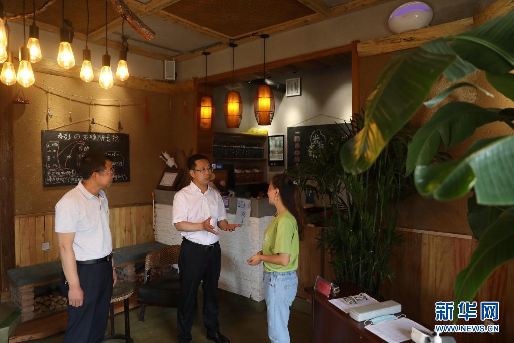 7月2日,在沈陽(yáng)市沈北新區(qū)興隆臺(tái)街道單家村,聞然(中)在調(diào)研民宿發(fā)展情況。新華社記者 楊青 攝