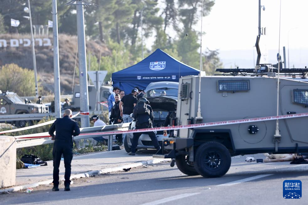 11月18日,在约旦河西岸古什埃齐翁路口,安全人员在袭击现场开展工作。新华社发(贾马尔·阿瓦德摄)