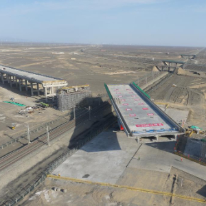 新华社乌鲁木齐11月18日电(记者关俏俏、阿曼)11月18日,新疆吐鲁番盆地天朗气清。距离鄯善县城70公里的戈壁滩上,两跨65米、重达2万吨的T形刚构连续梁正在等待作业。