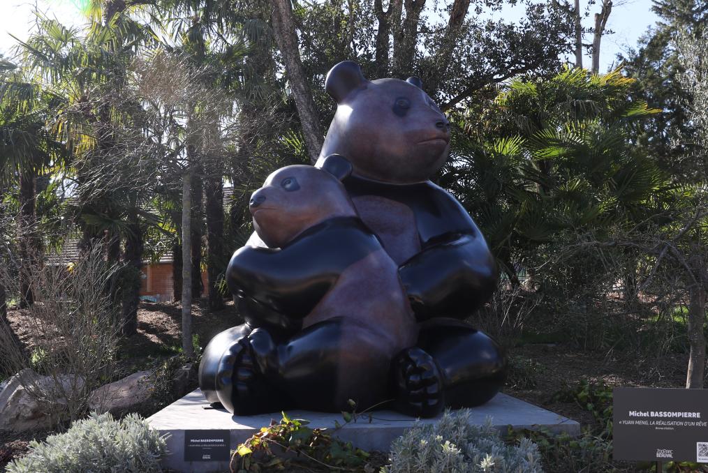 2024年3月,为纪念大熊猫“圆梦”的特殊身份,以其为原型的大型铜雕在法国博瓦勒动物园揭幕。
