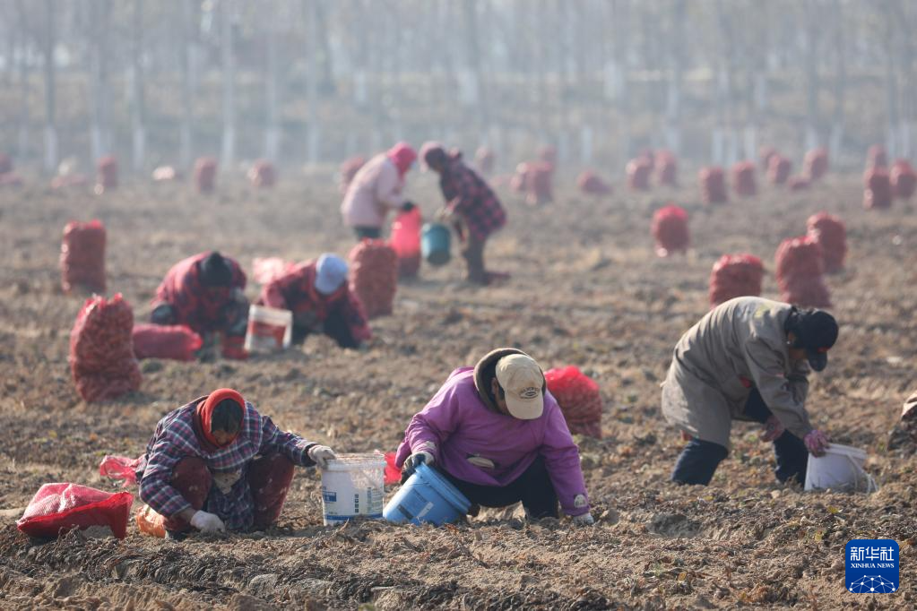 12月6日,河南省焦作市温县黄河街道东张王庄村农民在田间收获怀地黄。