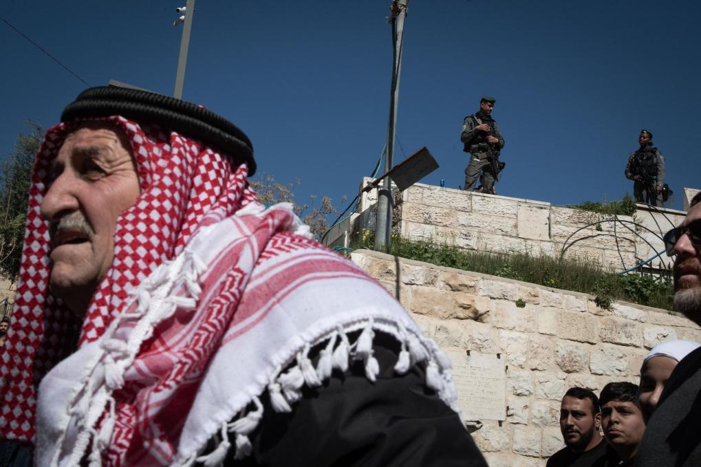 2月20日,在耶路撒冷老城,在以色列警察严密控制下,巴勒斯坦人走向阿克萨清真寺大院。新华社记者陈君清摄