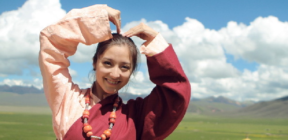 潘辰探訪(fǎng)西藏照曝光 身著藏袍甜美露笑起舞
