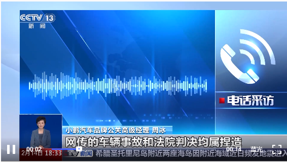 小鹏汽车品牌公关高级经理 周冰:网传的车辆事故和法院判决均属捏造,“北京网络举报”和“广东省互联网举报中心”等账号已经发布辟谣内容。我司已经将相关证据提供给警方,计划对造谣者和传播不实信息者依法追究法律责任。