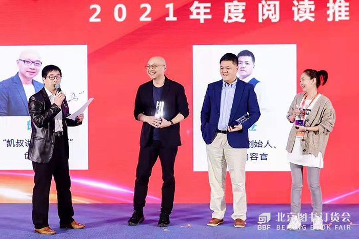 論壇上,為熱心閱讀推廣事業(yè)并做出了突出貢獻(xiàn)的三位“直播達(dá)人”——樊登讀書創(chuàng)始人、首席內(nèi)容官樊登,著名節(jié)目主持人王芳,“凱叔講故事APP”創(chuàng)始人王凱,獲頒“2021年度閱讀推廣大使”證牌。此外,融合國(guó)家出版發(fā)行信息公共服務(wù)平臺(tái)的CNONIX應(yīng)用示范單位銷售數(shù)據(jù)和商報(bào)·奧示監(jiān)測(cè)數(shù)據(jù)的2020年及2021開年最新統(tǒng)計(jì)數(shù)據(jù)分析報(bào)告同期發(fā)布。