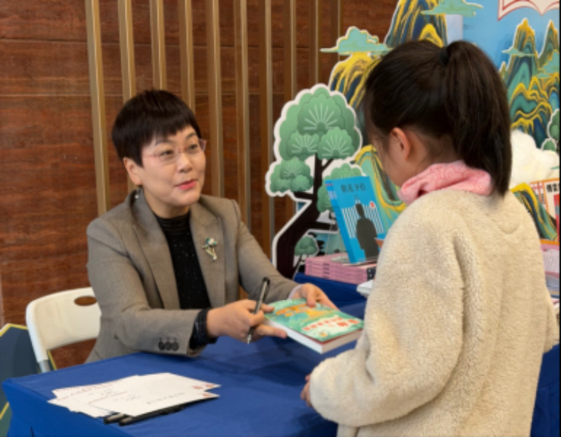 图为11月23日,作家汤素兰在活动现场与孩子亲切交流。