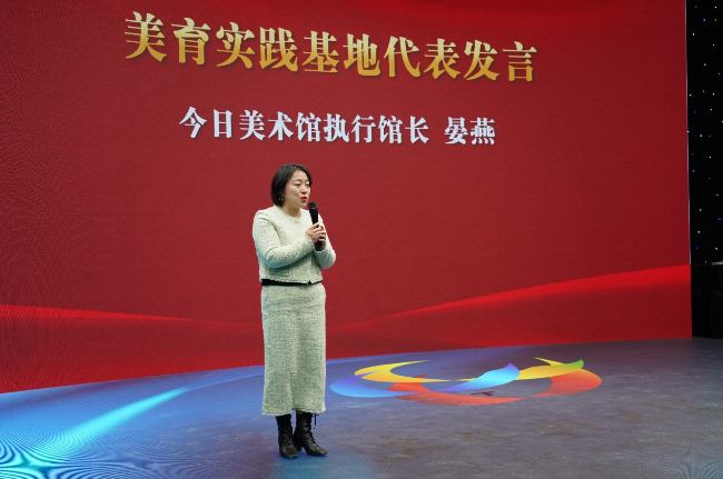 实践基地代表、今日美术馆执行馆长晏燕在发言中表示,作为美育实践基地,民营美术馆将打造更多高品质展览与教育活动,搭建好文化传播与美育普及的桥梁。