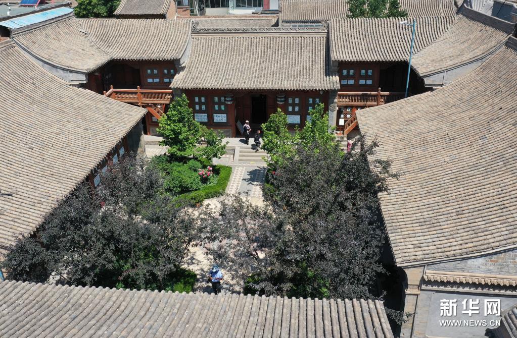 7月8日,游客在臨夏市八坊十三巷民俗館參觀(無人機照片)。新華社發(史有東 攝)