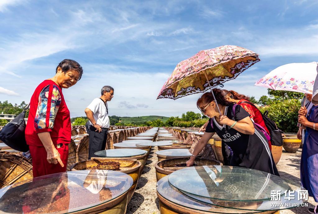 7月10日,游客在畢節(jié)市金沙縣禹謨鎮(zhèn)泡木灣醬醋基地參觀。新華社發(fā)(范暉攝)