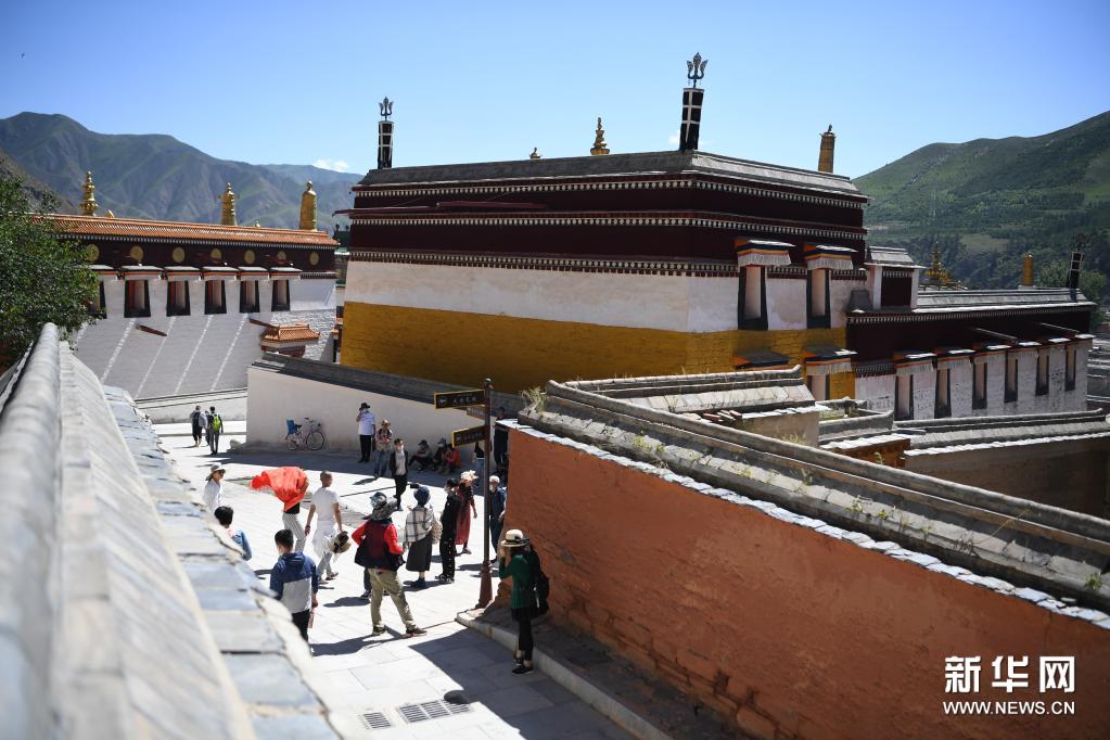 7月12日,游客在拉卜楞寺參觀。新華社記者 杜哲宇 攝