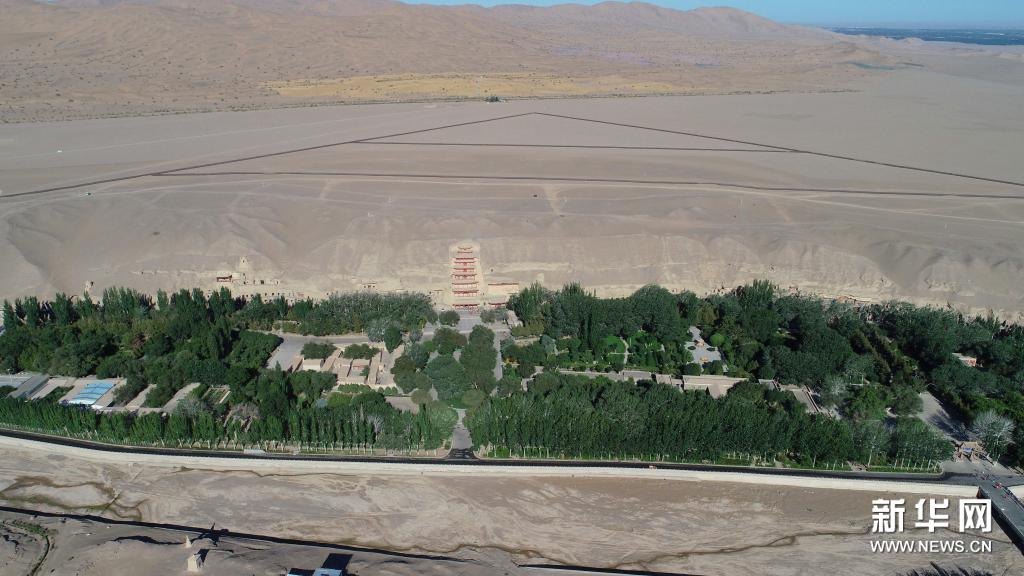 這是敦煌莫高窟(7月6日攝,無(wú)人機(jī)照片)。新華社記者 劉詩(shī)平 攝