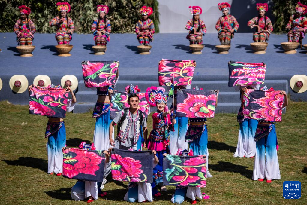 2月5日,演员身着彝族盛装在赛装节上表演舞蹈《赛装场上》。