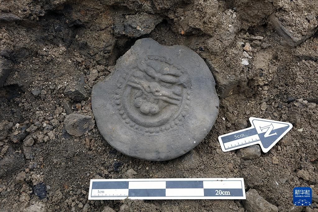 内蒙古巴林左旗辽上京皇城遗址南部一号建筑基址出土的瓦当(资料照片)。