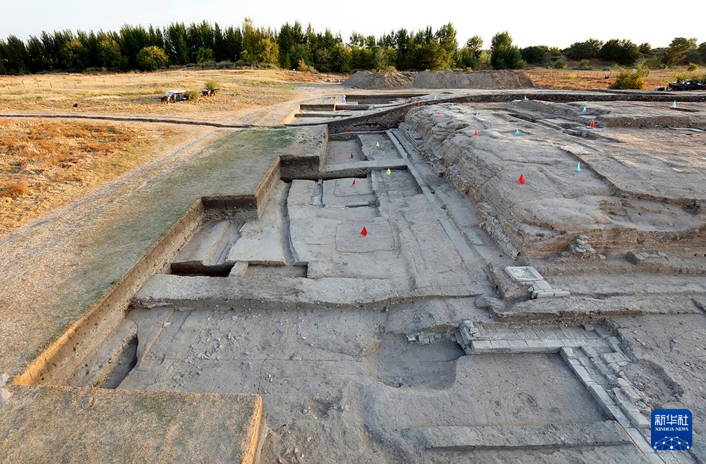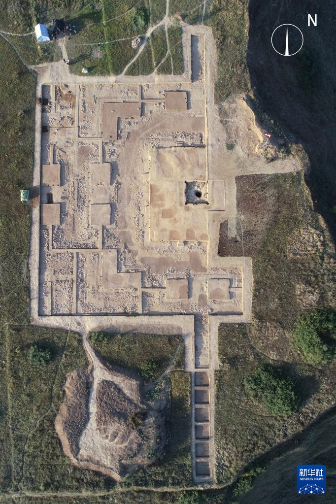 内蒙古巴林左旗辽上京皇城遗址南部一号建筑基址发掘后全景(资料照片)。