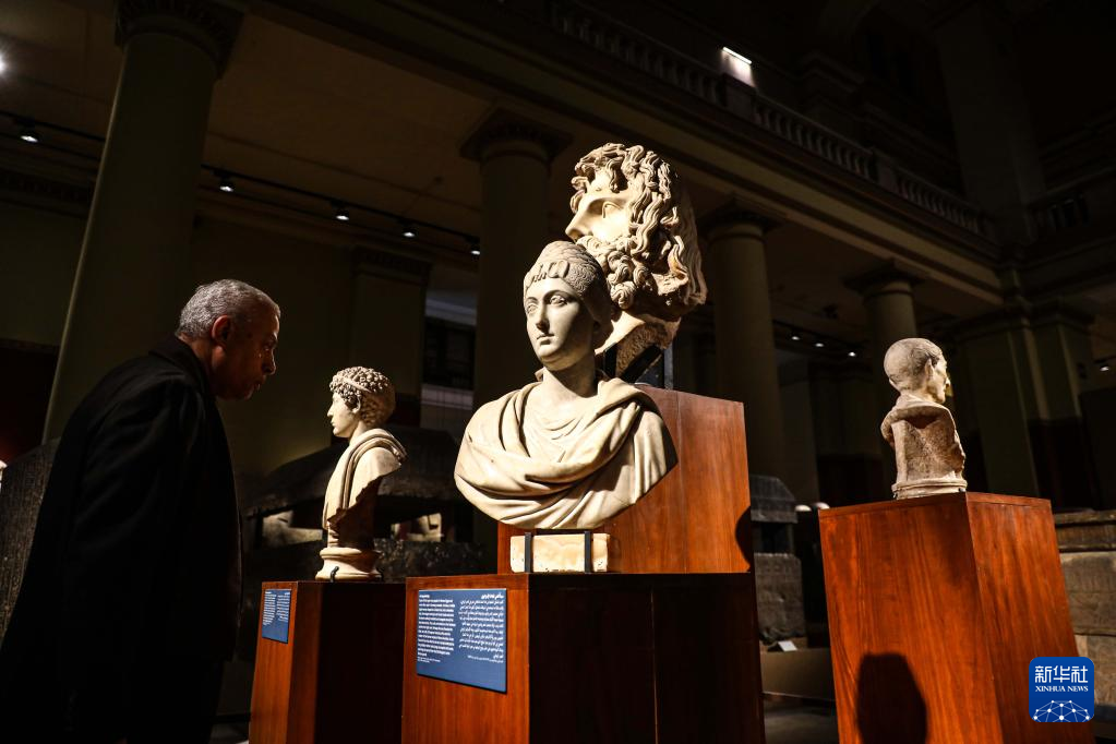 2月20日,参观者在位于埃及开罗的埃及博物馆内游览。