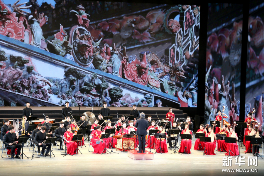 3月23日,“2023非遗品牌大会”在广州市开幕。当晚,“非遗之夜”展演在广州市文化馆新馆群星剧场上演。此节目为广东音乐《赛龙夺锦》。新华网 邢贺扬摄pagebreak
