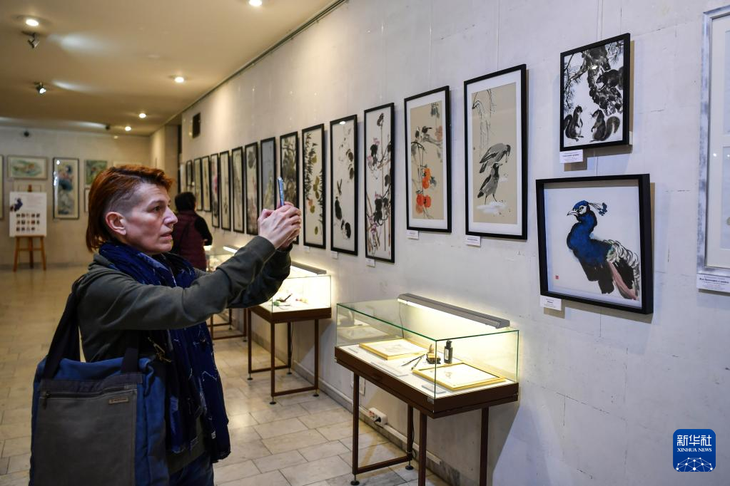 3月30日,人们在俄罗斯莫斯科达尔文博物馆参观中国绘画展。