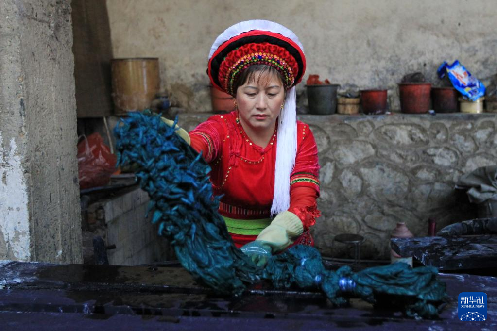 苍山脚下、洱海之畔,绿树红花竞相开放。在云南省大理市喜洲镇周城村,青瓦白墙的璞真扎染博物馆内,一位位白族村民的手下,蓝白交织的白族扎染正在如花绽放。