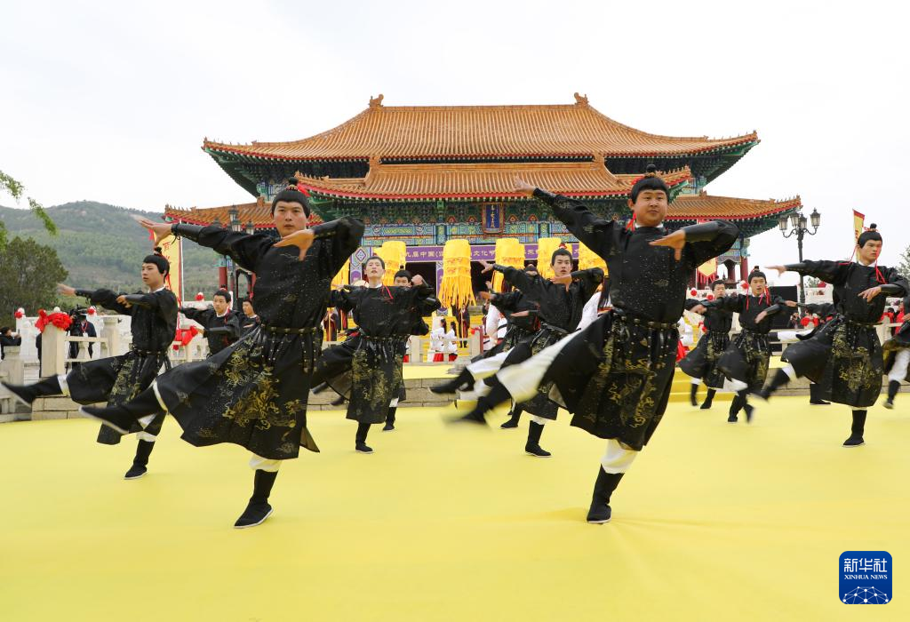 4月25日,在山东沂山风景区,演员在祀山大典上表演“乐舞”。