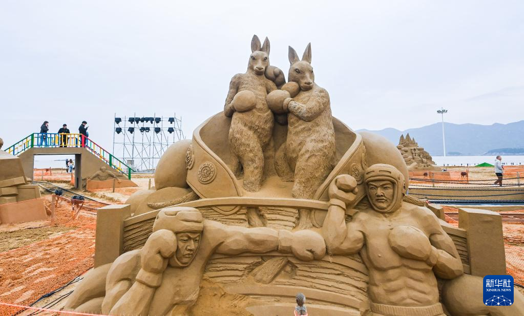 近日,第二十四届舟山国际沙雕节在浙江省舟山市朱家尖南沙景区举行。本届沙雕节以“动感亚运”为主题,展出了50多件沙雕作品,吸引游客前来参观游玩。