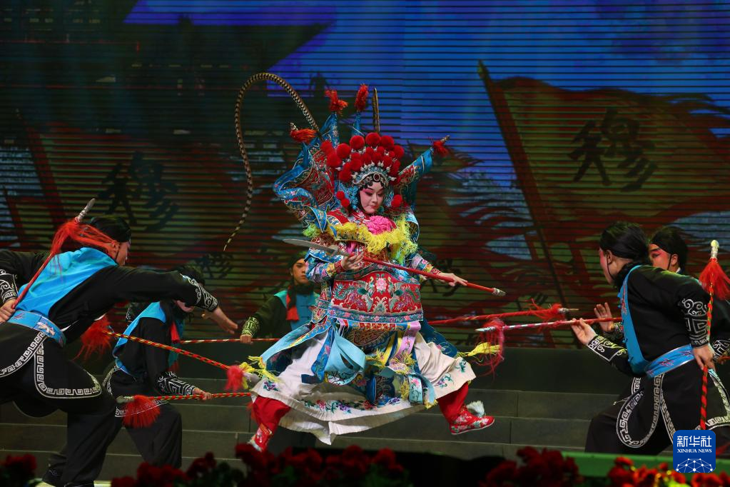 4月26日,演员在开幕式演出现场表演秦腔、晋剧、滇剧、河北梆子等多剧种版《大登殿》。