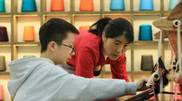 5月16日,民间艺人张林展示满族手工剪纸技艺。