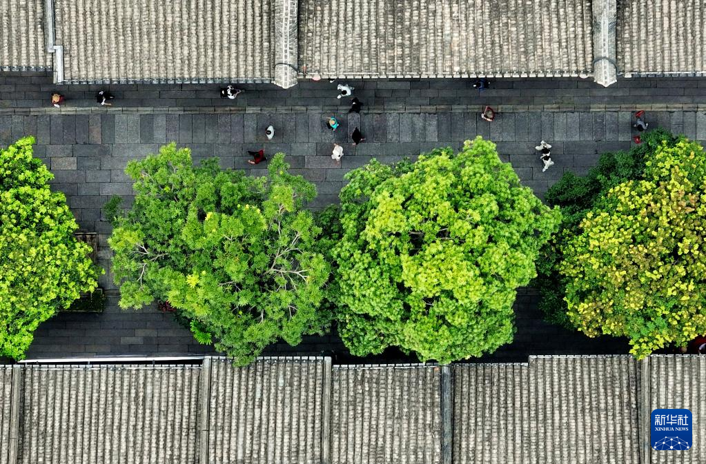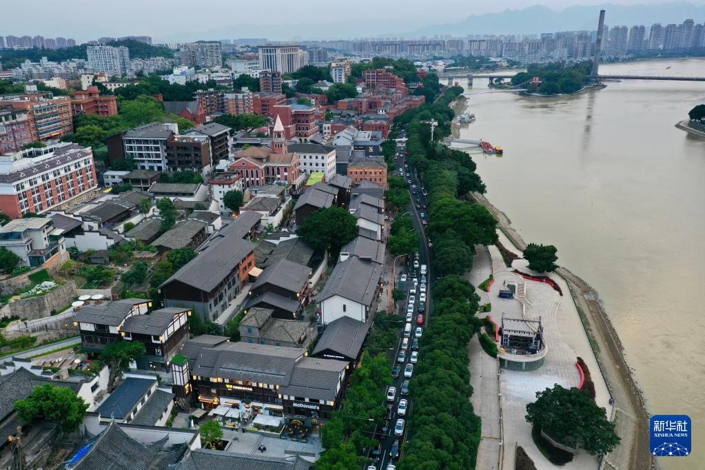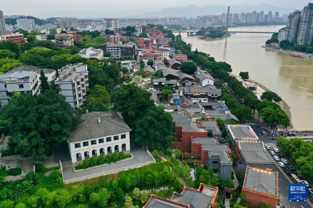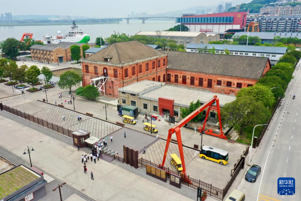 游客在位于福州马尾的中国船政文化城参观(5月16日摄,无人机照片)。