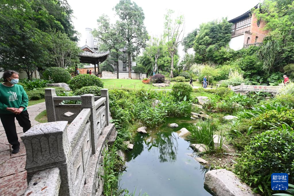 游客在福州冶山春秋园观赏山水景观(5月16日摄)。