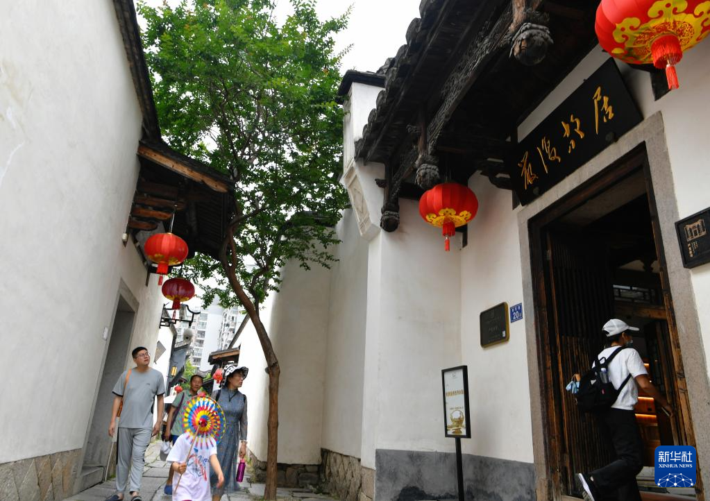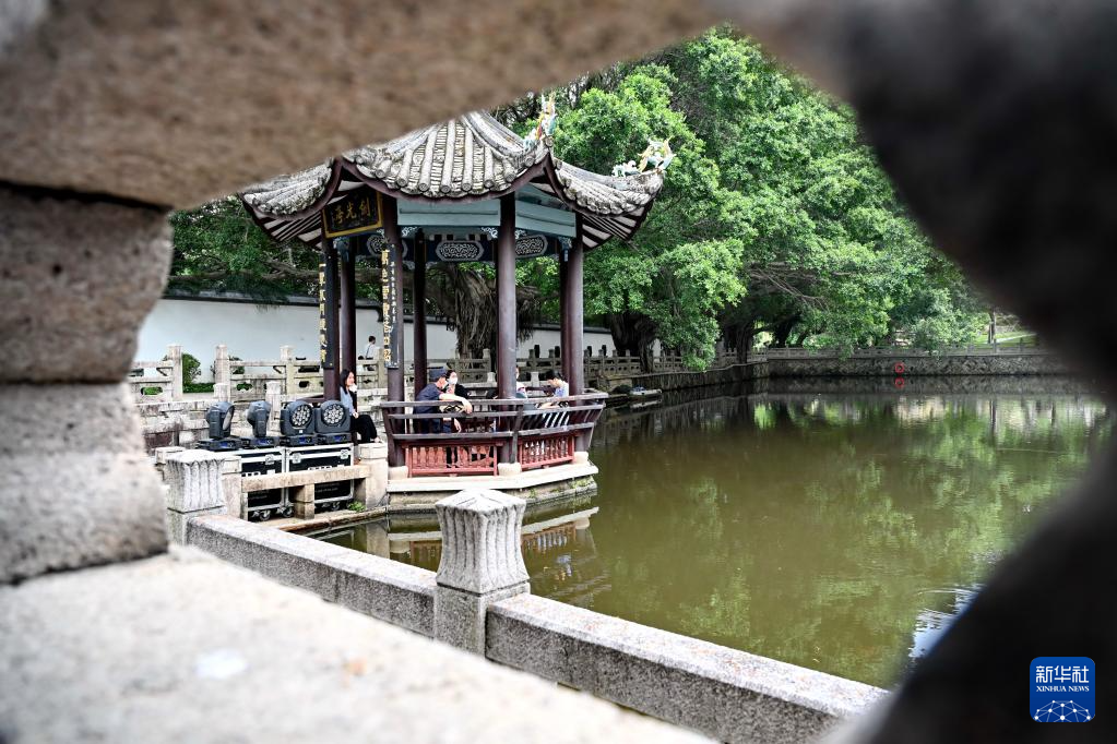 游客在位于福州三坊七巷历史文化街区的全国重点文物保护单位水榭戏台参观(5月16日摄)。