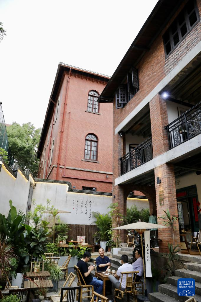 游客在福州烟台山历史风貌区古厝咖啡馆内休闲(5月16日摄)。