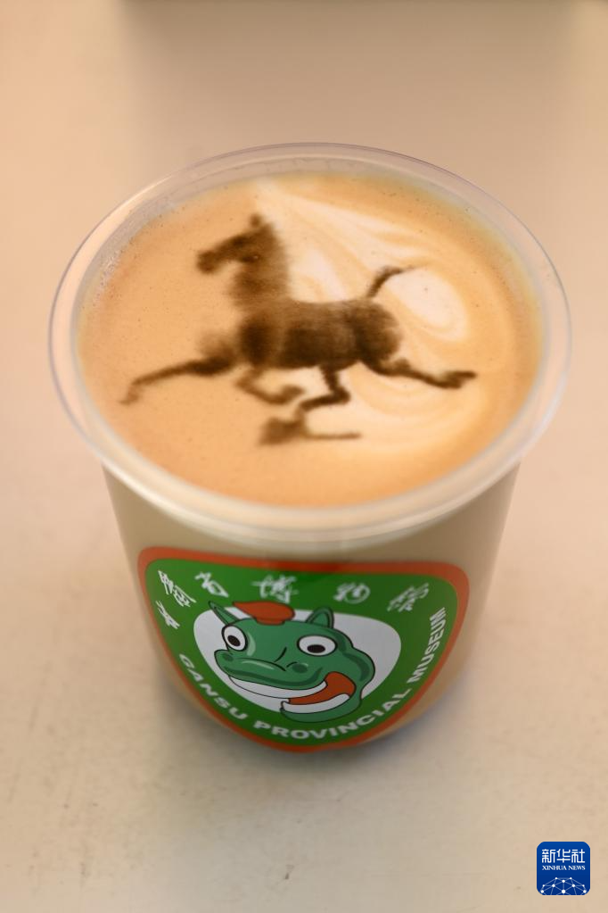 这是5月18日在甘肃省博物馆拍摄的铜奔马文创咖啡。