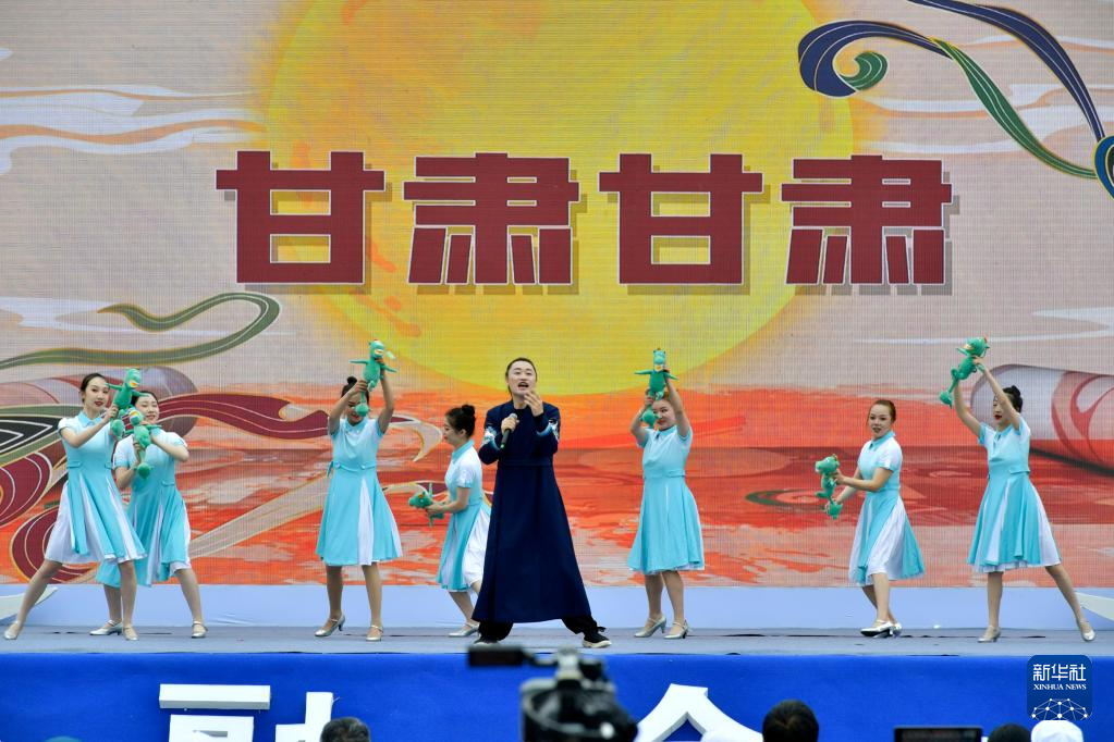 5月24日,演员在启动仪式上表演裕固族歌舞《甘肃等你来》。