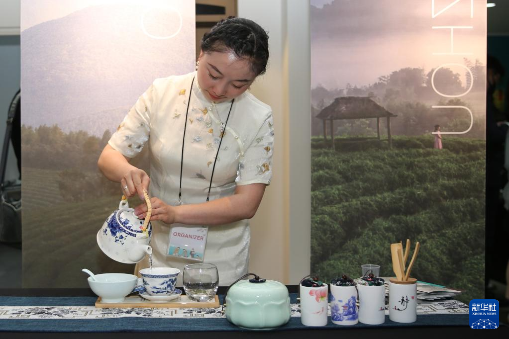 5月23日,工作人员在韩国首尔中国文化中心举行的“茶和天下·雅集”活动中泡茶。