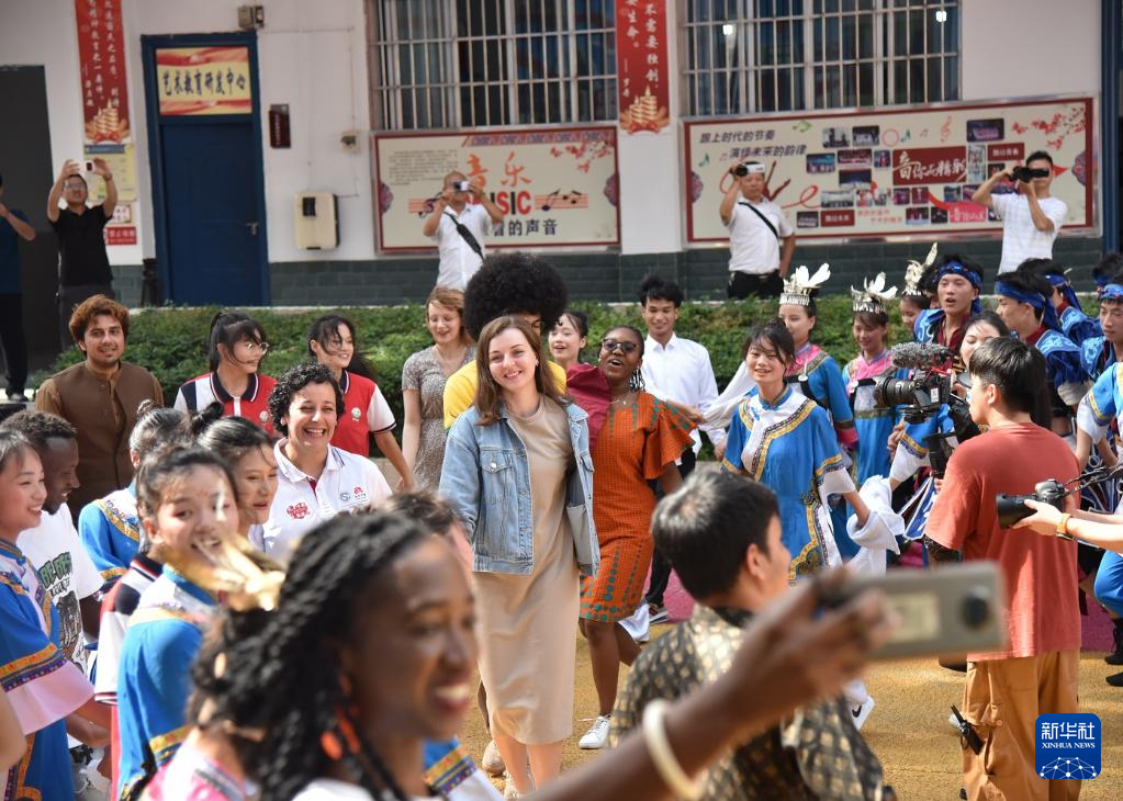 近日,“邂逅中国”来华留学生社会实践活动在贵州举行。6月5日,来自突尼斯、巴基斯坦、老挝、巴西、印度尼西亚等国家的20名来华留学生来到贵州省黔南布依族苗族自治州三都水族自治县的三都高级中学,和学生们一起参加该校举行的第一届国际文化节。