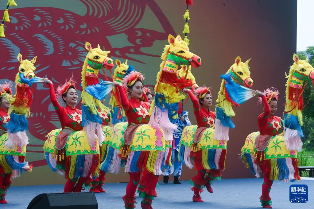 6月9日,活动现场举行的非遗表演——临平竹马。