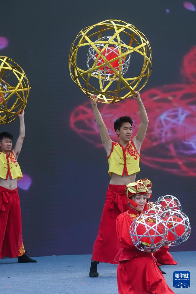 6月9日,活动现场举行的非遗表演——临平滚灯。