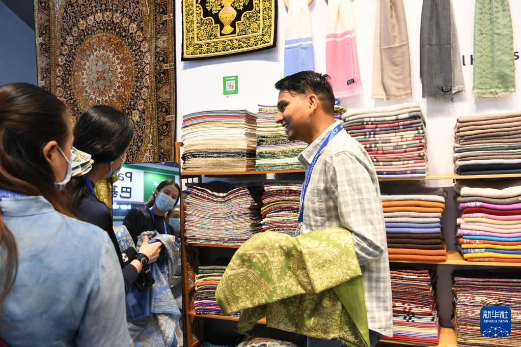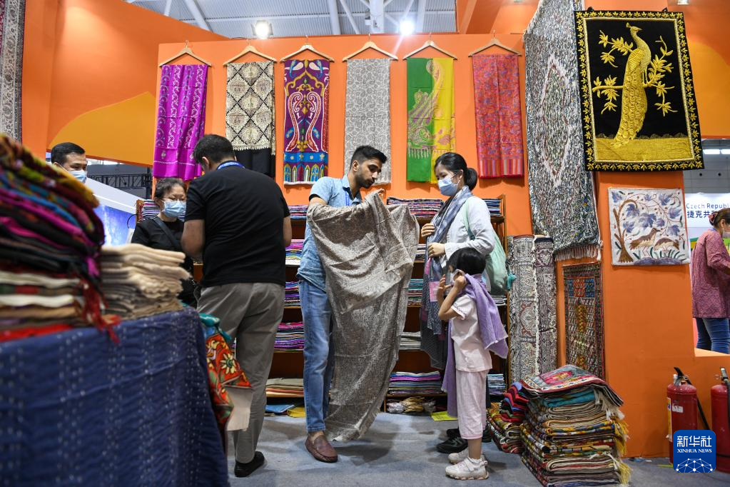 6月9日,在文博会“文旅消费馆·一带一路国际馆”印度展台,观众在选购特色商品。
