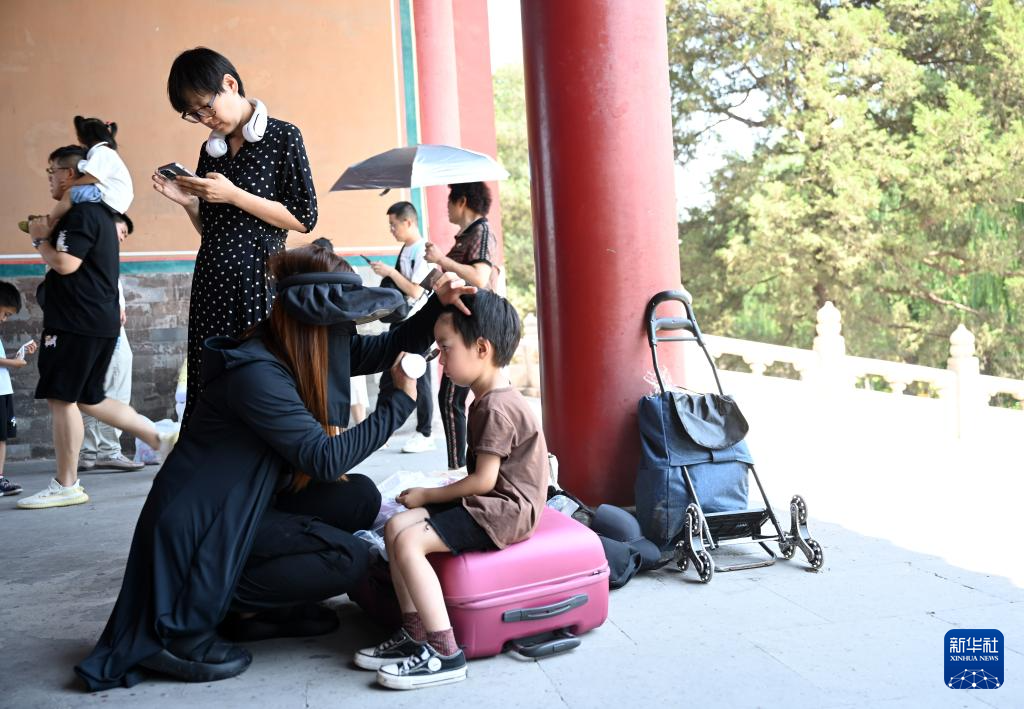 6月14日,一名小朋友在故宫内化妆,准备拍摄写真。